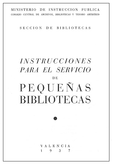 (*) Prólogo de Instrucciones para el servicio de pequeñas bibliotecas, publicadas en Valencia en 1937, y que redactó María Moliner. Transcrito a partir de la edición de Educación y Biblioteca, n.º 86, p. 18, en el homenaje a María Moliner, 1998.